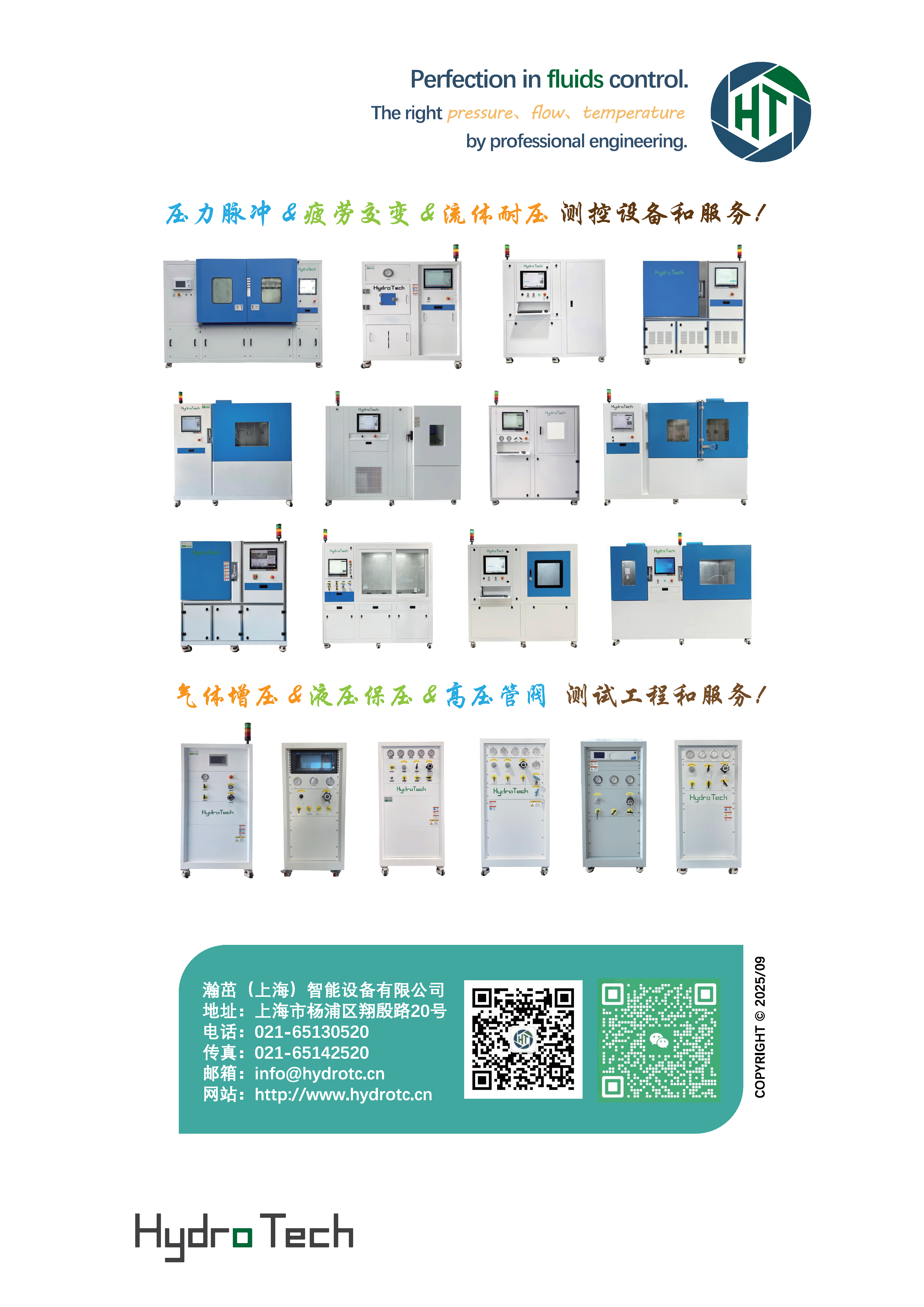 瀚茁(Hydro Tech)专业从事,领先的流体测控系统的设计、研发、制造以及完整系统解决方案和定制化工程服务。数十年的专业领域工程应用经验,让我们掌握了丰富的知识,可为当前最复杂、最重要的流体测控应用领域,量身打造解决方案。作为耐压试验系统、PVT(压力/振动温度)测试台架、压力脉冲疲劳测试系统、流体增压控制系统的高新技术企业,服务于汽车制造,航空航天,船舶重工,能源开发,国防装备和科研院所等应用领域。